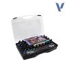 Ce boîtier contient les 80 couleurs de la gamme True Metallic Metal, organisées en 20 familles chromatiques, chacune avec sa version correspondante Base, Shade, Light et Airbrush.